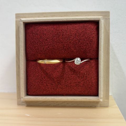 二人で相談しながら二人だけの指輪ができる。いろいろな素材、形、加工、宝石が選べ自分の好みや、二人だけのおそろいの指輪を作ることができる。また、箱もとても綺麗でくるみの木を使用し、一枚板からくり抜いて作っているためとてもシックな仕上がりとなっている