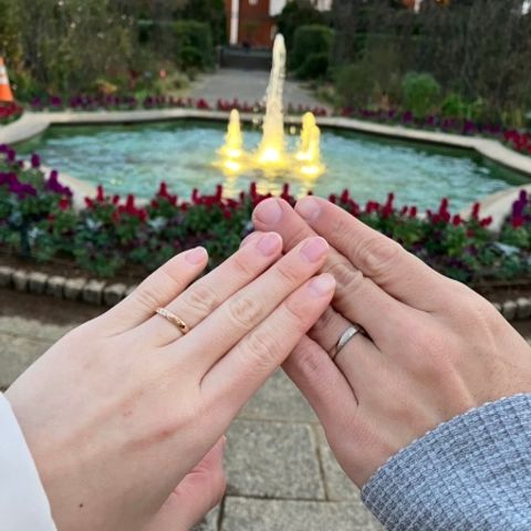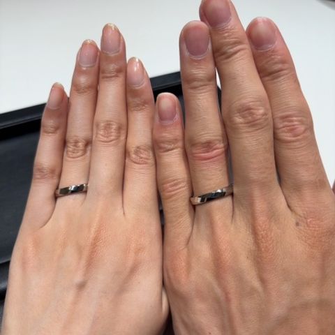 兎にも角にも鍛造製。 いつまでも使い続けられ変形しづらい指輪と知り、来店しました。最初は、どんな感じか雰囲気を知るためにお店にお伺いしましたが、お話を聞いているうちに、どんどん自分たちが造りたい指輪像が出来上がっていきました。担当者さんのお話の進め方、私たちの要望の汲み取り方、サイズの測り方、すべて親身になっていただけ、とても有り難かったです。