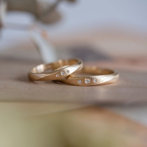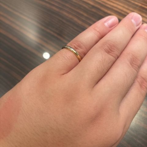 デザイン・色・テクスチャー・刻印を選び、自分たちだけの指輪が作製できました。 指輪をつける習慣がいままでなかったため、指になじむものがよいと思いシャンパンゴールド、ウェーブのデザインにしました。 レディースのみダイヤモンドの星留めをしてもらい、かわいくて気に入っています。