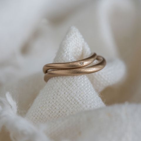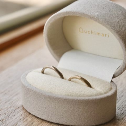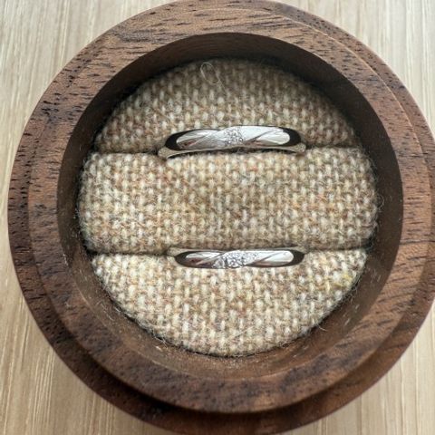 当初、何のアイディアもないまま来店しましたが、担当してくださった女性スタッフのKさんは、私たちのふんわりしたイメージを少しずつデザインに落とし込んでくださり、最終的にとても特別な結婚指輪を制作してくださりました。