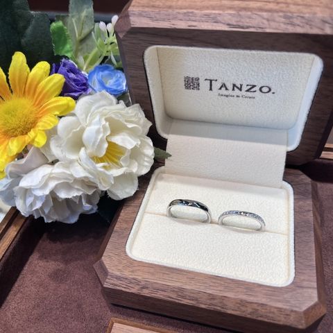 気に入ったデザイン×サイズがなかなか他の店舗ではなかったので、両方を実現できるTANZOさんの指輪に惹かれました。日本の職人さんが作られる丈夫な指輪という点もすごくよいと思いました。2人ともが納得いくようなデザインにできました。