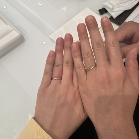 気になっていたデザインを掛け合わせたフルオーダーでお願いしました。 彼はプラチナ、私は肌馴染みの良かったホワイトゴールドで作成しております。 中には2つ重ねると出てくるデザインも入れていただけて大満足です! 指輪の太さなど私たちが考えていなかった点もアドバイスいただき助かりました!
