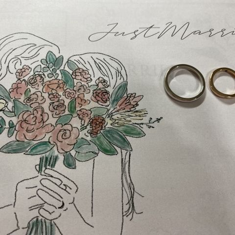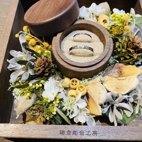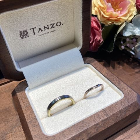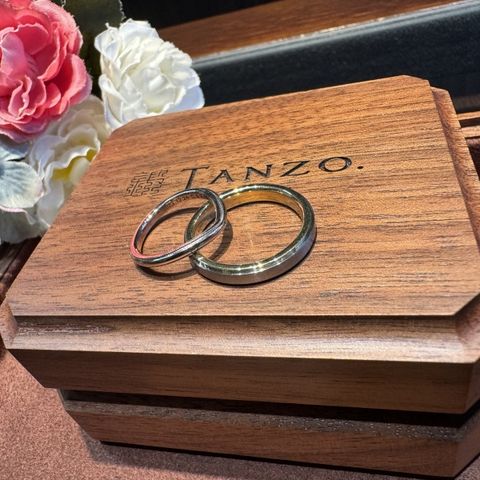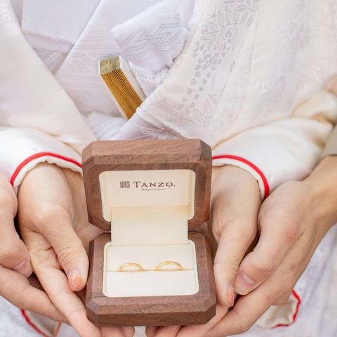 2人ともデザインのこだわりが多かったので、フルオーダーで作りました!ゴールドの色味が複数色から選べて、オリジナリティのある指輪を作ることができました!また、上側を和紙加工にしたところも、他にはなかなかないデザインでとっても気に入っています。