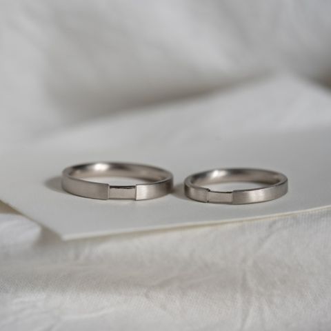 プラチナ・平打ち・ヘアライン仕上げにて製作しました。石は使わずシンプルなデザインが気に入っています。2人の好みがぴったり合ってスムーズに決めることができました。いつまでも大事に着用していきたいと思います。