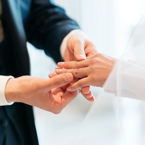 結婚指輪は肌身離さずつけていたいと思っていたので、ずっと付けていても飽きのこないシンプルなデザインにこだわりました! 表側のデザインは、リングの半分をつや消し加工、もう半分をスターダスト加工。 裏側は、手書き文字の刻印で、お互いのイニシャル、結婚記念日を入れています。