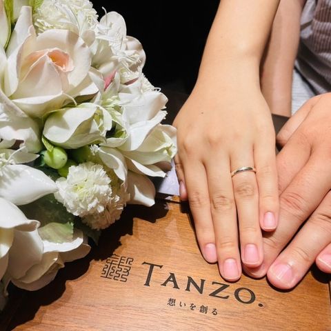 自分たちで実際に金の糸を結ぶデザインがかわいい! シンプルだけど、人と被らないところがお気に入りです! ダイヤを2石つけてもらったのですが、ダイヤのお値段も良心的でした。 また、旦那さんの指輪はダイヤの代わりにつや消しをしてもらい、ペア感を出してもらいました。