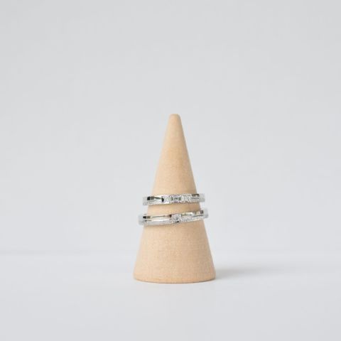 ねじりのデザインを取り入れたフルエタニティです。 このリングの素晴らしいところは、横から見ても上から見ても斜めから見ても、全方位からきちんとダイヤモンドが正面に見えるようにメレをセットしているところだと思います。どこからどう見ても美しくダイヤが見えるのはこの指輪だけだと思います。