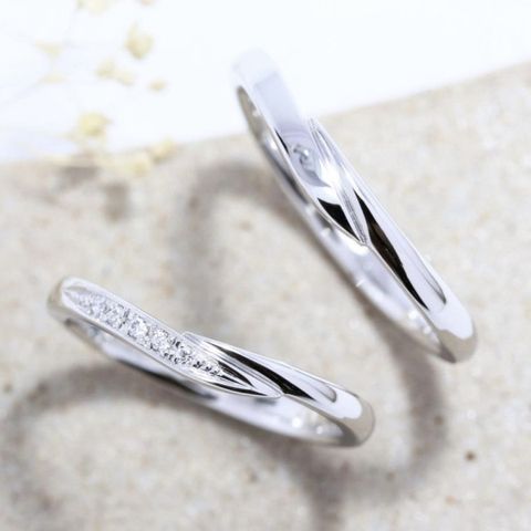 あまりほかでは種類がない、V字のペアリングなので人と被らず良かった ダイヤモンドにこだわりがあるらしく、はずれにくくキラキラしてる上にデコボコはあまりなかったのがよかった。 つや消しができるのも良かったポイント。