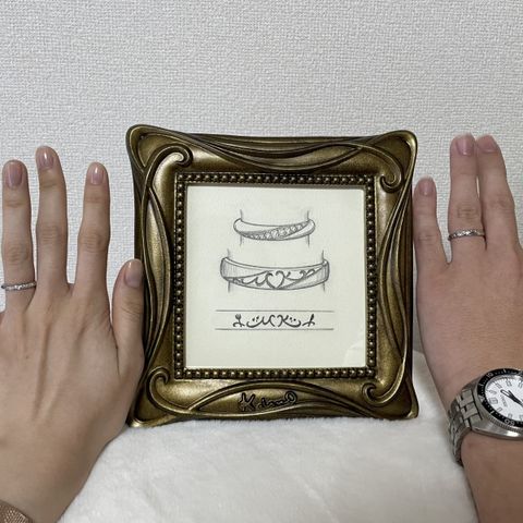 私たちは年を重ねても綺麗に付けられるように、太めの指輪を探していました。またペアでお揃い感がある指輪にすることも大事にしたいポイントでした。TANZO.さんでは指輪の太さも指定することができ、デザインはオーダーメイドできるので、お揃い感もデザインに表現することができました。こだわりポイントはえぐり加工の隙間の幅です。幅も1mm単位で絵を描いてシミュレーションしていただき、違和感のないデザインにしていただきました❤️