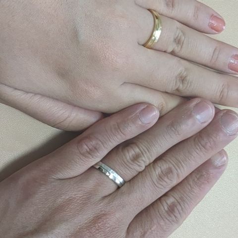 デザインから相談して、パートナーと作り上げた指輪なので過程から完成まで全てが思い出になり愛着が湧きとても満足しています!4mで打目と鏡面のツートンにして一粒のダイヤを入れて、デザインは同じだがプラチナとゴールドで分けました。