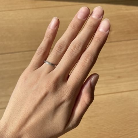 デザインはシンプルで中にダイヤと記念日を入れました。価格を抑えてこんなにも理想の指輪を作ることができて本当に良かったです!シンプルかつプラチナで作ったので、飽きのない長く愛用できる指輪が出来て本当に満足です✨