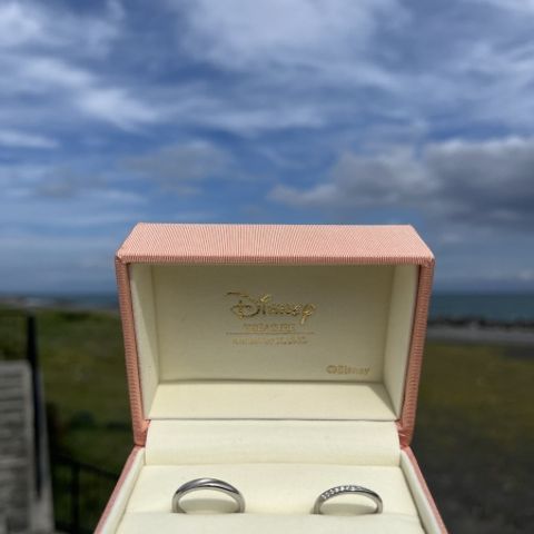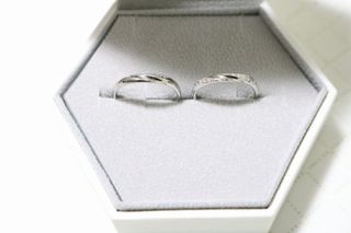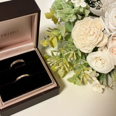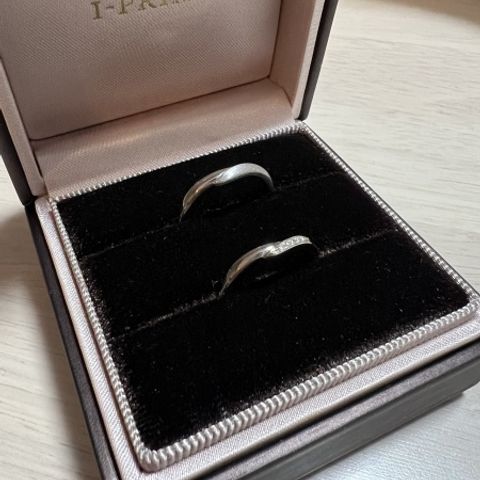 婚約指輪をメインにしたい、重ね付けをしても婚約指輪が映えるデザインにしたいという要望にしっかり応えてくださいました。 婚約指輪にはプロポーズの思い出、結婚指輪には付き合っていた期間ずっと2人でやっていた事と、こちらの思い出も全部汲み取ってデザインに入れてくれています。