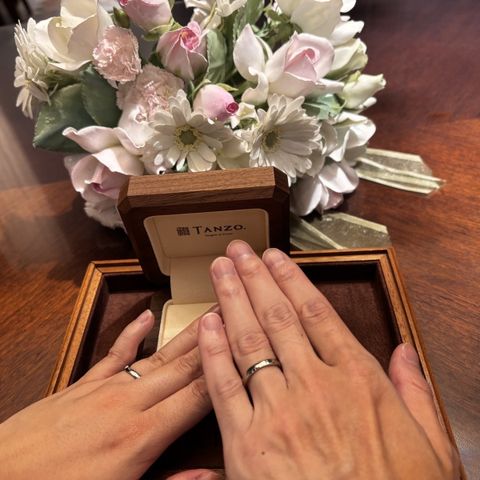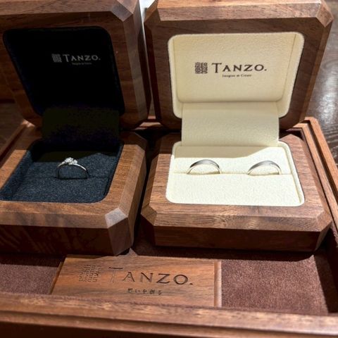 TANZOさんは一点一点手作りしてくだる、 鍛造製法なのが、1番の決め手でした。そして、ブランドの想いとスタッフの接客で決まりました。やっぱり、有名なハイブランドのスタッフの接客がよろしくないことも耳にしていて、最後はやっぱりそういうところで決まるよなって 思います。