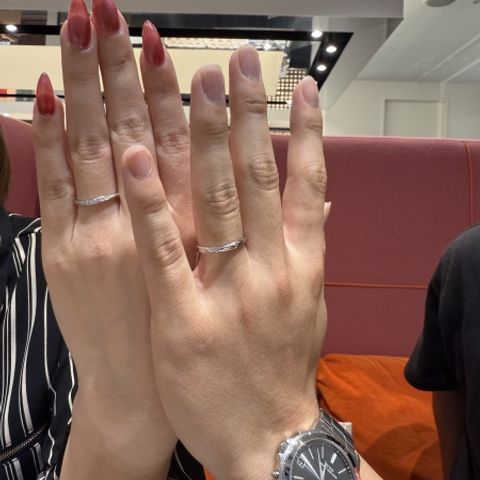 特に槌目が綺麗で、かっこよくて、ほぼ一目惚れでした。妻は、槌目にダイヤを埋め込んで、さらに綺麗でした。そして、他のブランドには無い、入籍指輪がありました。結婚指輪を作製する前にテスト用の指輪を頂くことが出来ます。2週間程度、サイズ感のテストをした後、サイズを決定できます。なので、安心してサイズを決定できました。長く使うものなので、ありがたいです。