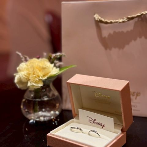 ①内側に2人だけのディズニーデザインの刻印を入れられました! ②デザインの豊富さ、色々な重いの込められたデザインが沢山あって自身たちの納得のいくデザインに巡り会えました。 ③刻印のデザイナー 2人の思い出からイニシャルを組み合わせて可愛らしいデザインを刻印いただきました。