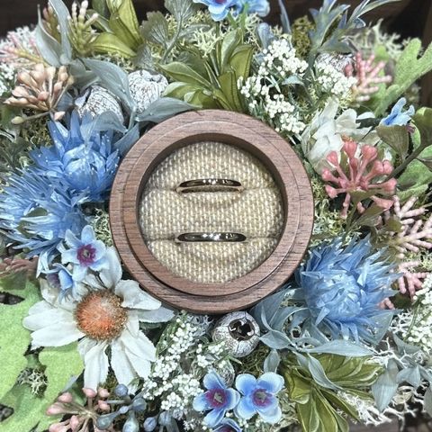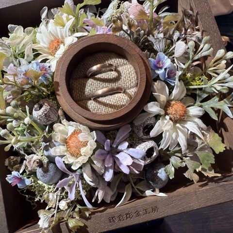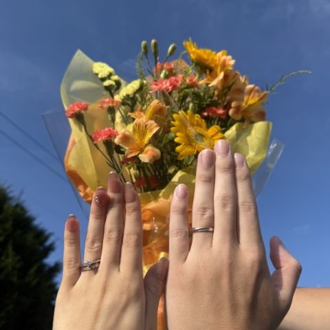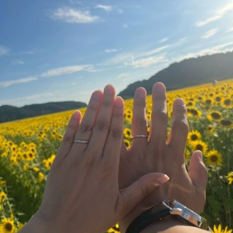 自分達の肌に合うカラーで選び、普段使いしやすいデザインを選びました。後々加工を変えられるので、また違ったデザインを楽しむ事が出来ると思います。最初は棒の状態から、徐々に指輪になっていく過程がとても楽しく、加工も自分達の好きな程度で決められるのも良かったです。