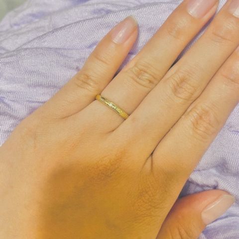 よくある普通の結婚指輪ではなく少し変わったものがいいと思ったので、金槌で叩いて模様をつけました。叩き具合で自分だけの世界に一つだけの指輪になりました。すごくかわいくて大満足です。太さもちょうど良いです。