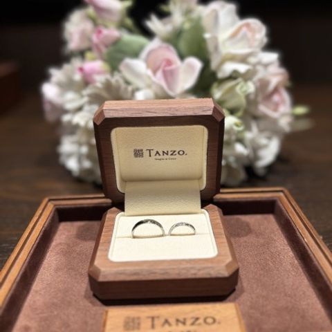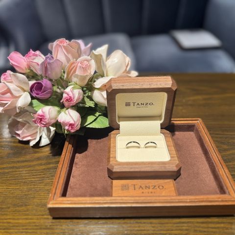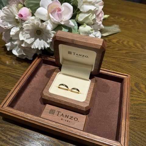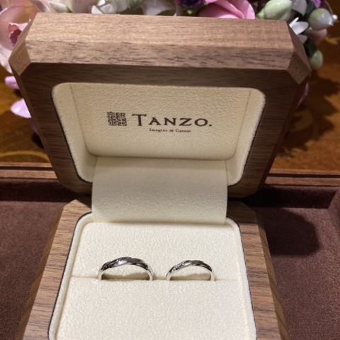 奥さんがTANZOの指輪が良いと言っていたのでここに決めたのですが、いざ来店してみると日本のブランドと言うこともあって、日本のデザインが凄く良いなと思 いました。オーダーもバリエーションが多くとても良いなと思いました。