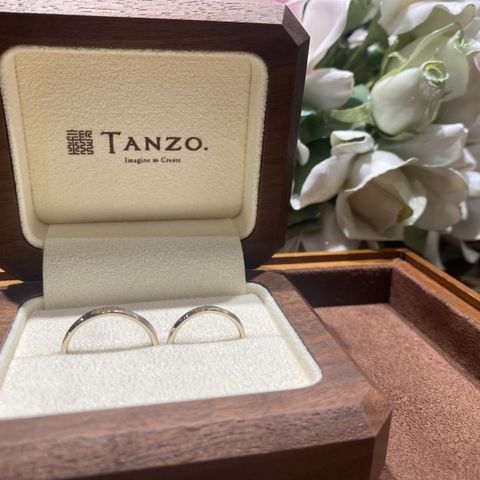 シンプルなデザインと鍛造製法が希望でTANZOさんに決めました!シンプルなデザインですが指輪のミリ数も0.1ミリ単位で選べ質感や刻印細かくこだわる事ができます! ペアだけど男性はシンプルがいい、女性はダイヤやデザインが欲しいなという希望も叶えられます! シンプルだけど世界に一つというのがいいよねと話していたので夫婦ともに大満足な指輪を手に入れられました(^^)