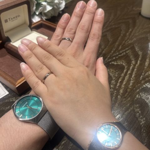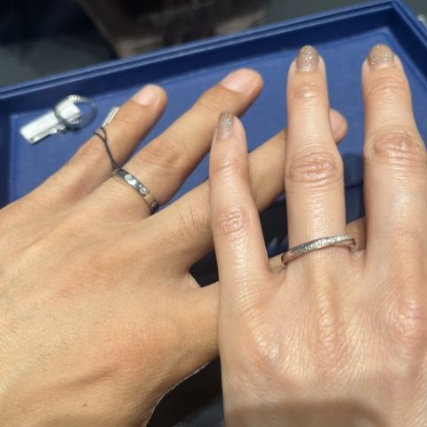長年身につけていくものなので、鍛造製法ということに私たちはこだわりました。 既製のデザインではなく一から自分たちのオリジナルの結婚指輪をつくることができました。できるまで指輪のデザインがわからないところは不安でしたが、デザイン検討するうえでスタッフさんが親身にさまざまなサンプルを用意してくださり、最終的に大満足の仕上がりになりました。