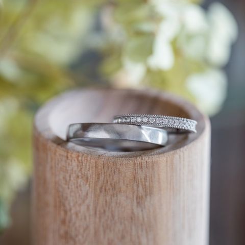 お互いが好きなようにデザインを変えられたことです。既製デザインの中で気に入ったものから色やツヤ感を自由に変えられたので自分の納得のいくものをつくれました。内側の刻印をデザイナーさんが素敵に提案してくださいます。自分たちが好きなものを取り入れ、何パターンか提案していただく中で納得のいくものを作ってくださいました。