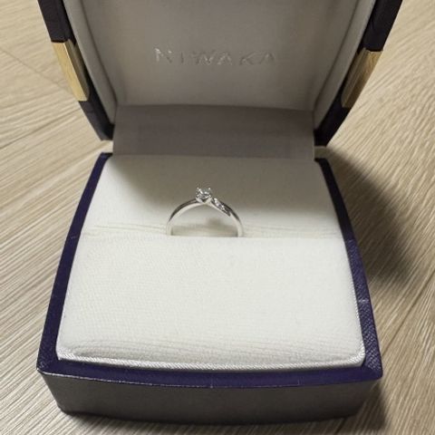 価格は50万程度で、サイドに同じダイヤが埋め込まれてるのがとてもかわいいポイントです!シンプルなデザインと迷ったんですが、結婚指輪と重ねてつけることを考えたら、これくらい派手なデザインでもいいかな、と思い最後にダイヤをサイド二つつけました。
