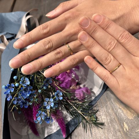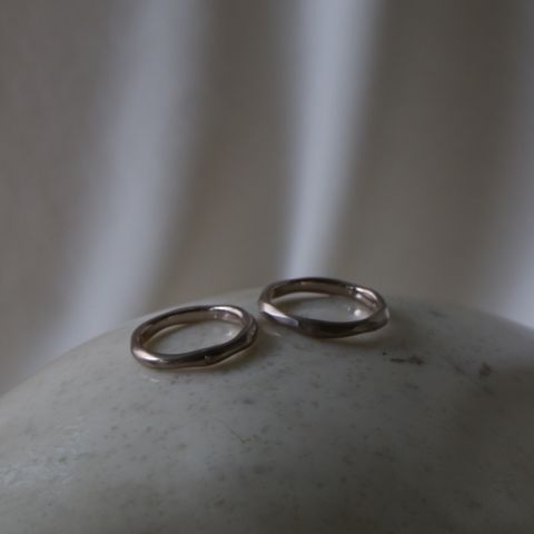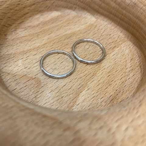 土目の風合いが温かくて、ホワイトゴールドのやわらかい色味とも相性抜群でした。シンプルだけど個性があって、見るたびに愛着が湧きます。手作りならではの温もりも感じられて、世界にひとつだけの特別な結婚指輪になりました。これから長く身につけていくのが楽しみです。