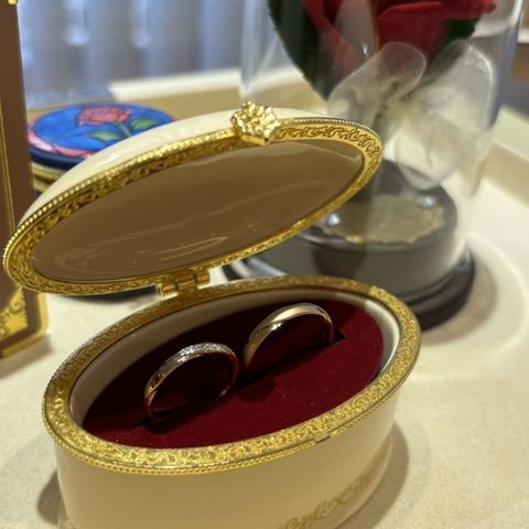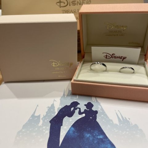 2人ともディズニー好きで好きなキャラクターの刻印が出来るという時点でケイウノさんに決めてました。キャラクターの種類・デザインもも1000種類程!お互いに指輪の形のこだわりがあり、ペアではないのを選びましたが、ペア販売では無く、お互いが気に入った指輪で選べる!というのもとってもおすすめです!指輪に意味もしっかりあるので、ペアの指輪でなくても、指輪に意味がしっかりあるので、お互いの2人に向けた意味をもって付けられるのもいいなと思いました。