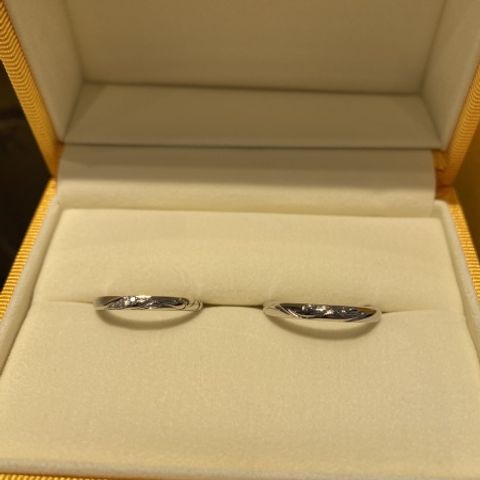 製造方法から夫婦で相談して選ぶことができて、デザインやカラー、刻印や宝石も自分好みに作ることができました。 強度があるのに着け心地がなめらかで見た目は美しくとても気に入りました。 夫婦でお揃いにしつつ個性も出したいというわがままが叶うリングが作れて大満足しております。