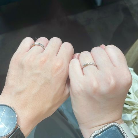 自分の雰囲気や手にあった指輪を2人で考えて作りました。 光沢の有無や内側の刻印なども選べるのもより想いが詰まっている感じがしてすごく良いものになったと思います! 種類も豊富で手にあったものをたくさん選べるのも良いと感じます。