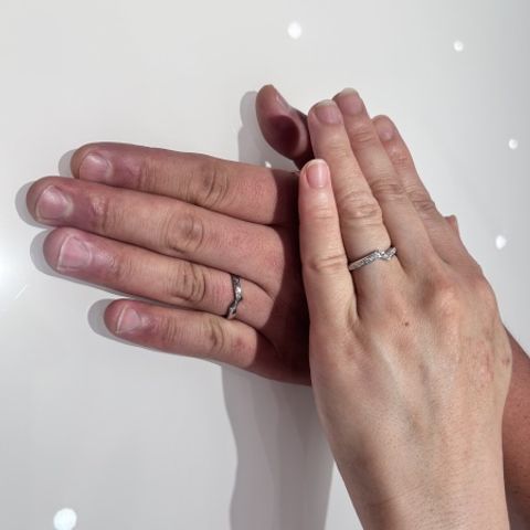 2人ともゴールドの指輪を付けたかったのですが、他の店舗ではなかなかゴールドのセット商品が無く、満足のいくデザインもなかったため、理想の指輪を作らせていただきました。付けた時に、想像の数倍キラキラと輝いて素敵で、一生の宝物になりました。