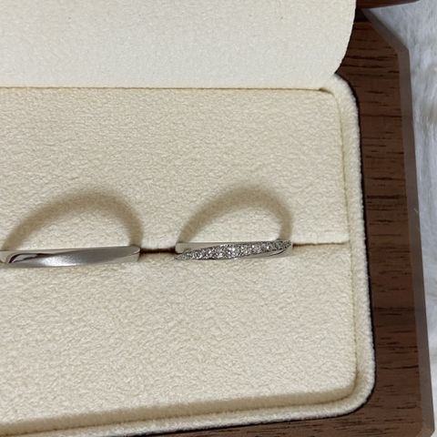 ''無理にキラキラしない「自分らしい」結婚指輪''のコンセプトに惹かれて婚約前から気になってたお店でした! 加工の仕方も色味も自分好みにセレクトできるので唯一無二の指輪になるのが良かったです! インスタで見てたからお店の雰囲気も好みでときめきが止まらなかったです!