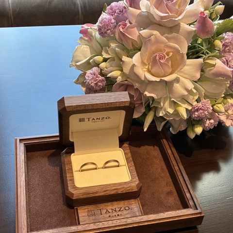 【指輪について】 鍛造製法のフルオーダーで作っていただきました。ミル打ちをベースに作成いただけるところを探していましたが、なかなか鍛造製法ではデザインに縛られがちで苦労しました。 指輪は真ん中より下にミル打ちを入れ、ミル打ちの上を鏡面、下を荒目マットにして仕上げていただきました。 鏡面にもう1アクセント欲しいと言うところに、ミルで境目を作り、荒目マットを入れているところがアクセントとなっていて特別感があるのがオススメです。 【価格などについて】 他社にもいくつかまわりましたが、そもそも鍛造製法ではデザインに縛りが多く、自分の思い通りのデザインにしたいとなるとそれだけ価格が上がってしまいました。それに比べてtanzoさんでは価格も他社と比較すると抑えめで自分の思い描くデザインに仕上げられたのがとても良かったです。