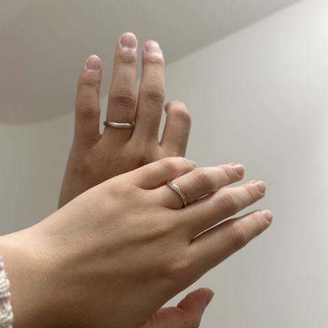 素材やデザインを2人で選ぶことができて、とても楽しく指輪を決めることができました。指輪の色味も数多くある中から自分の肌に合う色味をえらぶことができて、納得のいくものを選ぶことができて、とてもよかったです。