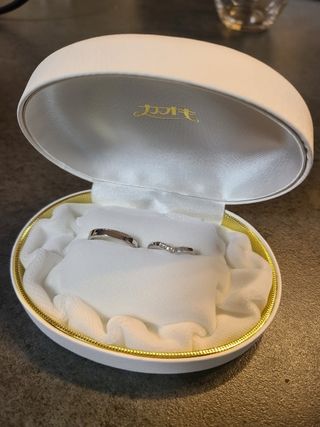 鍛造製法で魅力的なお店で 色や形から自分たちで選択し決めました。 仕上がりまで3ヶ月、出来上がった指輪をみて スターダスト加工がとても可愛く、着け心地もとても良く これから指輪を付けていくのが楽しみで仕方ないです。