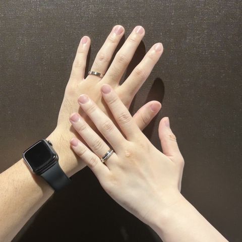 2人で指輪デザインを決めて作成した時間の思い出が指輪に詰まっていて特別感があります。 2人それぞれ違うデザインにすることもできるので自由度も高いです。 私たちは、プラチナの素材とカーブのデザインはお揃いに、表面のデザインは鏡面とヘアラインで好みに合わせました。また女性のみは一粒ダイヤも入れました。