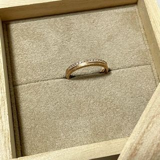 大きなダイヤがついたリングは日常生活で着けにくいだろうとのことで、エタニティタイプのリングを婚約指輪として探しました。エタニティリングはブランドごとに展開はしているものの、似たようなデザインのものが多かったのですが、こちらのリングは側面にティアラをモチーフにしたミル打ちが施されており、唯一無二のデザインだと思いました。