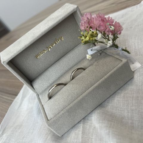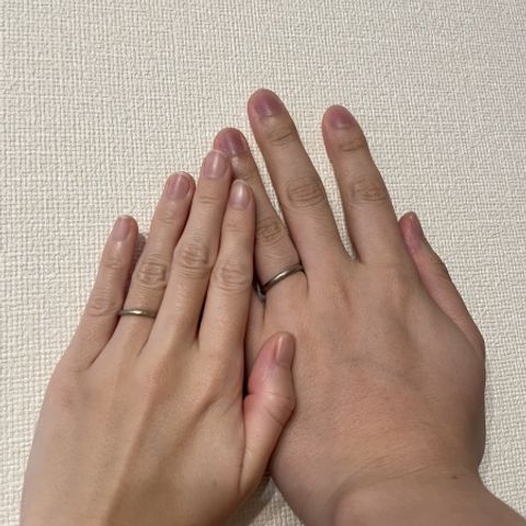 ホームページに載っていた指輪のデザインがシンプルで気に入ったことがきっかけで、来店しました。 ヘアラインのマット加工でお揃い感を出せたのがよかったです。内側に誕生石とイニシャル、日付を入れたデザインが気に入っています。