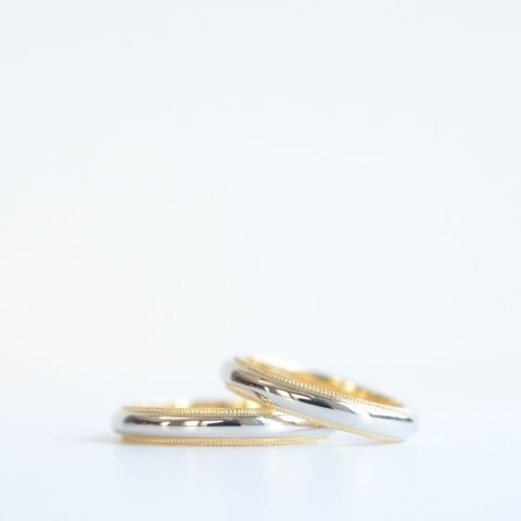 内側に金を使用し外側をプラチナで覆っているデザインにしました。内側の金の部分の幅を広めに取り、出ている部分をミルグレインというデザインでつぶつぶの形状を選択してとても満足のいくデザインになりました。価格も地金の金額を踏まえ、サービス対応も考えるととても満足しています。