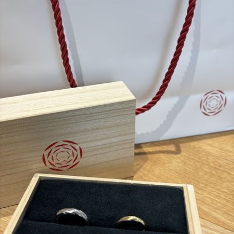 ブランド物に興味がない人でも、自分たちのこだわりが詰まった指輪を手作りすることができます。 指輪の幅、仕上げ、色も細かく選ぶことができるところ、手書きの彫刻を入れられるところも魅力的でした。 色:シャンパンゴールド サイズ:14号・6.5号 仕上げ:ヘアライン 形:丸