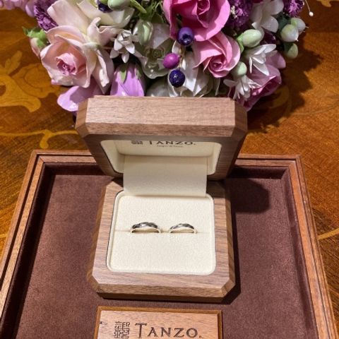 フルオーダーのため、自分たちのこだわりを詰め込むことができた。普段、他にも指輪をつけるが違和感なく馴染むのが良い。ブランド系の指輪だとメンズのデザインがシンプルなものがほとんどだが、様々なアレンジができるため、作るのも楽しかった。