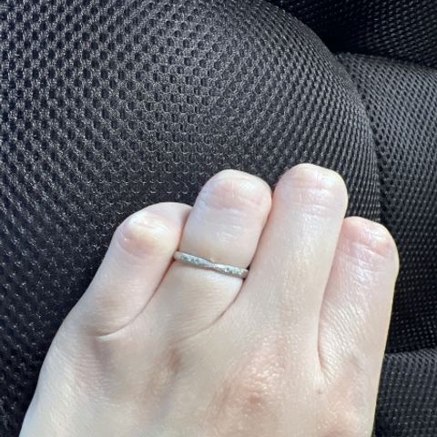 唯一無二のデザイン性がある指輪が欲しくて購入しました。指は細く節々があるタイプなので、華奢ではなくクールなデザイン性がとても気に入っています。婚約指輪感、を良い意味で感じさせないデザイン性があり、普段使いもできるため気に入って毎日付けています。ダイヤの輝きをより引き立たせるために、光が入りやすい加工がしてあり、キラキラした輝きがとても気に入っています。