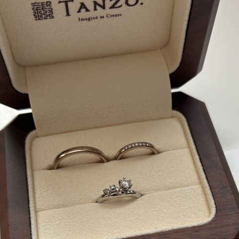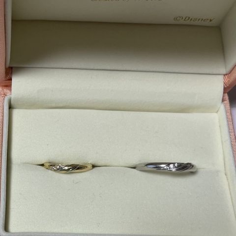 デザインが凄く素敵で綺麗な指輪! お互いが似合う色という事で夫婦で色が少し違うものを選ばせて頂きました。ピンクゴールドとプラチナ&ペールブラウンゴールドです。 また、指輪にこめらたストーリーがグッときました☺️
