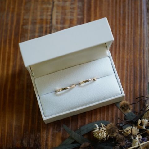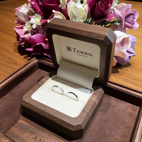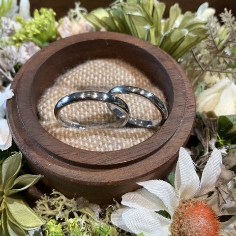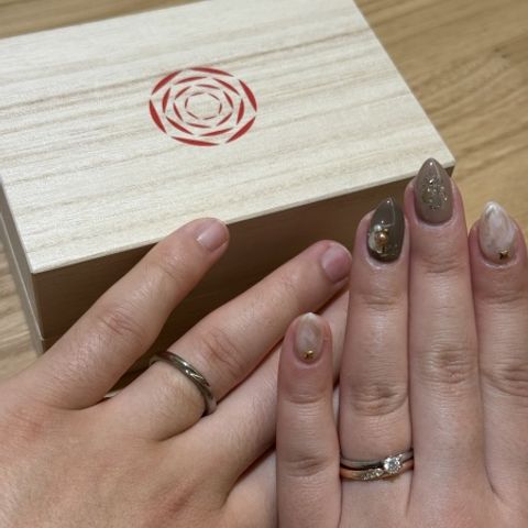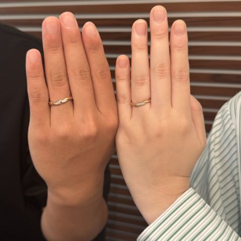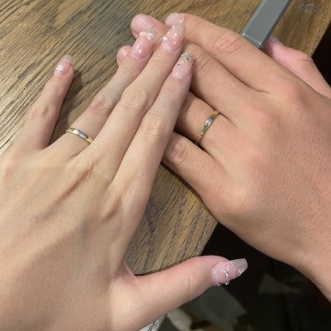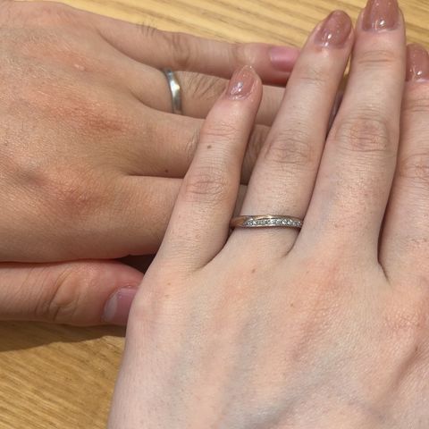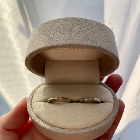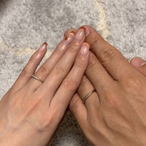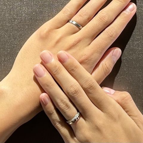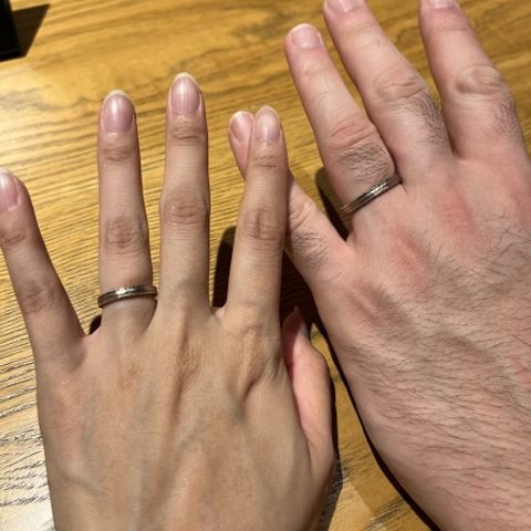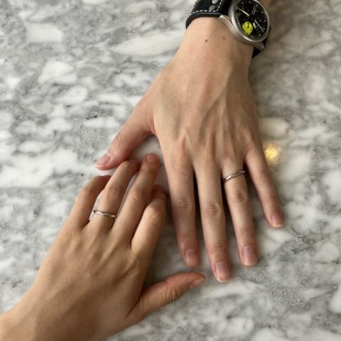 事前にお試しの指輪を作ってもらい、それを実際に身につけて生活することで、着け心地やサイズ感を確認してから、結婚指輪を作っていただけました。 完成した結婚指輪は自分たちにピッタリで、まったく違和感なく着けることができています。