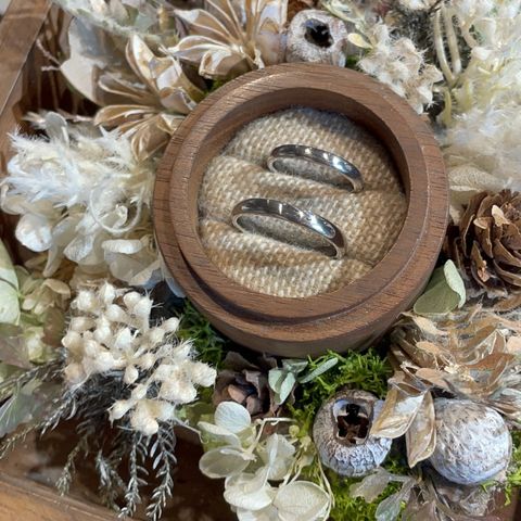 どの服装にも合うよう太すぎず細すぎず丸みのあるシンプルなデザイン、同じ指輪で素材を変えて2人の指輪を作って頂きました。同じ指輪なので統一感もありお互いの絆がより一層深まるような感じがします。ちなみに、男の私はグレーゴールド、暗く輝く男性の方に合う色、パートナーの指輪はシャンパンゴールドでとても華やかに輝くとても美しい指輪です。