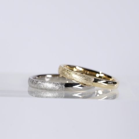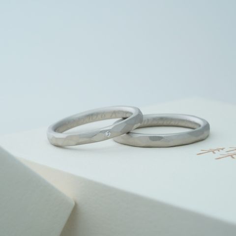 それぞれ号数が違うサイズにしたので、ペアですがお互いの好みに合ったものになりました。また幅が広いので飽きるかと思いましたが石地にしたことで表情の変化がある気がしてシンプルですが気に入ったものになりました。経年経過が楽しみです。