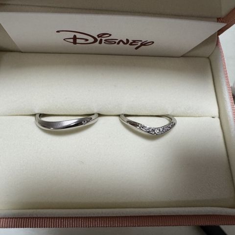 ディズニーのデザインが可愛く、イニシャルやミッキーのシルエットを内側に刻印しました。とても可愛く、結婚指輪と重ねづけしてもおしゃれなデザインになりました。イニシャルもオリジナルの物をデザイナーさんが作ってくれました。