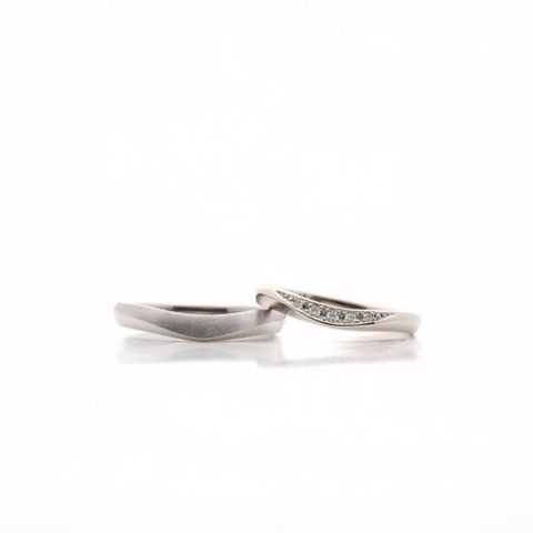 私は元々、『品』の婚約指輪・結婚指輪で揃えたいと思い、店舗に伺いました。しかし、店舗で実際につけてみて、婚約指輪を『波』結婚指輪を『品』にしました。柔らかなラインと、着け心地の優しさ、婚約指輪の品のいい輝きが気に入りました。また、重ね付けした際のフィット感も気に入り、この指輪を購入しました。シンプルではあるけれど、石が大きくなくとも光を受けたときにキラキラとかがやく素敵さがあります。