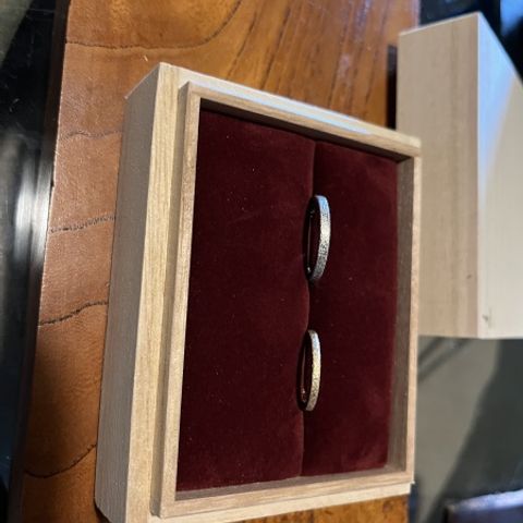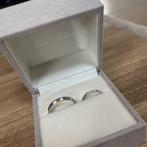 私は太めのリングが欲しかったので、旦那も合わせてもらいました。シンプルだけど個性が欲しかったのでこちらを選びました。上下で文字が入っているのでどっちが上か最初わからなくてあたふたしてました。店員さんがちゃんと教えてくださったので助かりました。