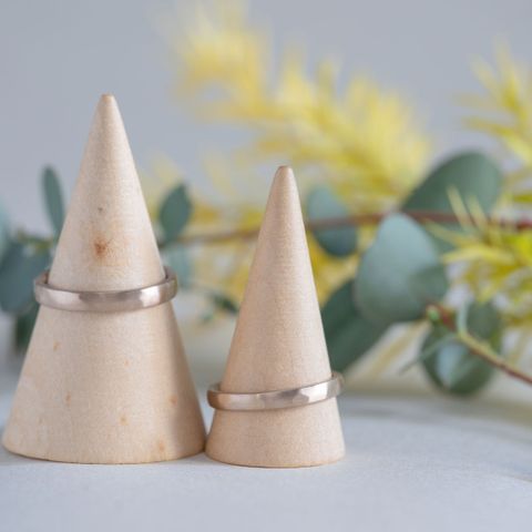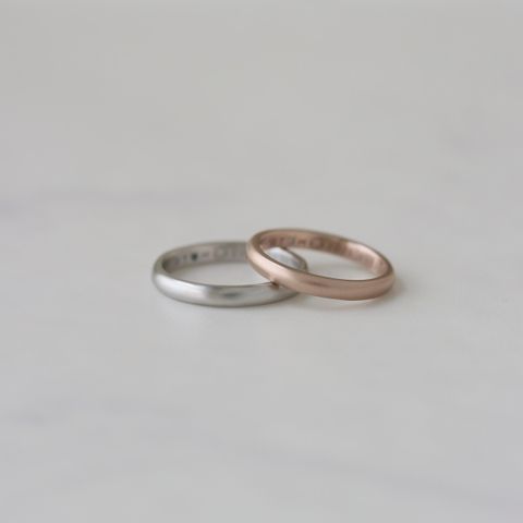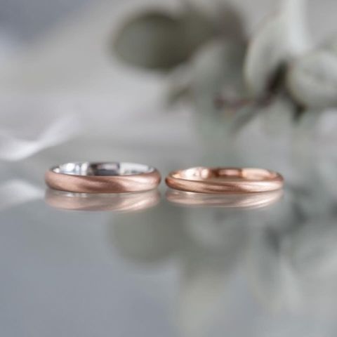 オリーブというデザインで 毎日着けられるような指輪にしたかったのでシンプルなデザインでお願いしました。 太さはそれぞれに会う幅で ピンクゴールドとマット×鏡面加工をお揃いに 私は内側をプラチナで作って頂きました。